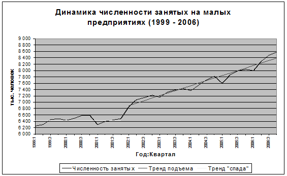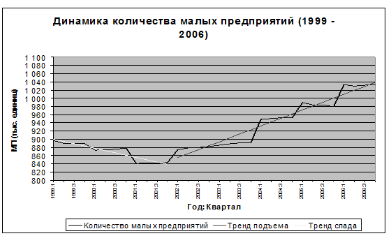 Эконометрический анализ динамики позволяет получить достаточно точные количественные оценки и, в частности, обосновать указанное выделение двух периодов в развитии малого предпринимательства.