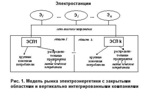 Схематично система закрытых областей энергоснабжения с вертикально интегрированными компаниями представлена на рис. 1.