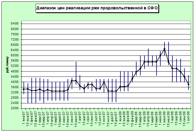 По информации из Алтайского края, официально озвучиваемые закупочные цены на продовольственную рожь по данным на 01 октября 2008 г. варьировались в диапазоне руб./т, но в основном осуществлялись по цене не выше 4000 руб./т.