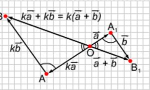Умножение вектора на число подчиняется тем же законам, что и умножение чисел. Докажем три закона, справедливые для любых векторов