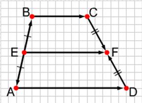 Далее, вы увидите, как применяется векторный метод на примере доказательства уже известных вам теорем о средней линии треугольника и трапеции.