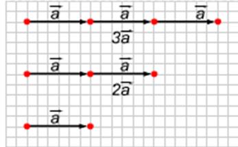 Определив сложение двух векторов, мы можем рассмотреть суммы вида: а+а, а+а+а и т. д.. Такие суммы, как и в алгебре, обозначаются 2а,3а и т. д. (рисунок1). Этот пример показывает, что удобно ввести операцию умножения вектора на число, и подсказывает, как дать соответствующее определение.