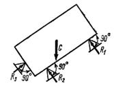 4) Связь, осуществляемая точечной опорой (рис. 1.4 г). Реакция связей R1, R2 R3, направлены перпендикулярно поверхности опирающегося тела.