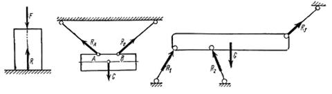 Реактивные силы (реакции) – стремятся противодействовать перемещению тела под действием активных сил (сила R, рис. 1.1).