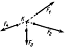 Линии действия сходящихся сил пересекаются в одной точке (рис. 2.1, а). Сходящиеся силы можно перенести в точку пересечения их линий действия (точка К, рис. 2.1, б).