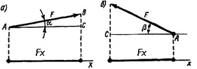 Fx - проекция вектора F на ось x - это отрезок, отсекаемый перпендикулярами, опущенными на ось х из начала и конца вектора F (рис. 2.3).