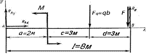 3) Выбираем координатные оси х и у (рис.2.6, б). Направление координатных осей х и у следует выбирать так, чтобы хотя бы одна из осей была перпендикулярна неизвестным силам (реакциям).