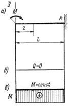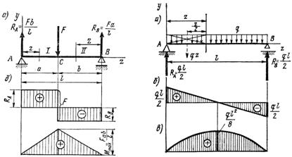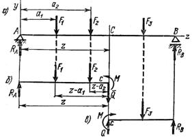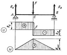 При изгибе в сечениях балки от действия изгибающих моментов возникают нормальные напряжения (s), а от поперечных сил Q - касательные напряжения (t). Но в большинстве случаев касательные напряжения невелики и при расчетах на прочность не учитываются.