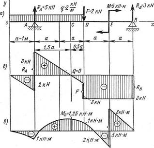 3) Определение наибольшего допускаемого изгибающего момента производится в том случае, когда заданы размеры сечения балки и допускаемое напряжение: