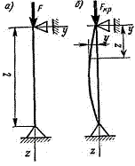 Продольный изгиб (рис. 13.1) – происходит при увеличении сжимающих продольных сил выше критического значения, при котором ось стержня искривляется.