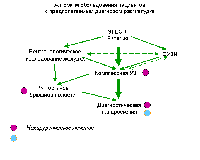 1) Алгоритм диагностического обследования пациентов с предполагаемым диагнозом рак желудка: