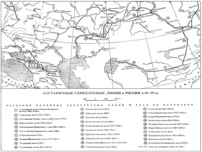 Рис.1. Пограничные укрепленные линии России XVIII-XIX вв.[1]