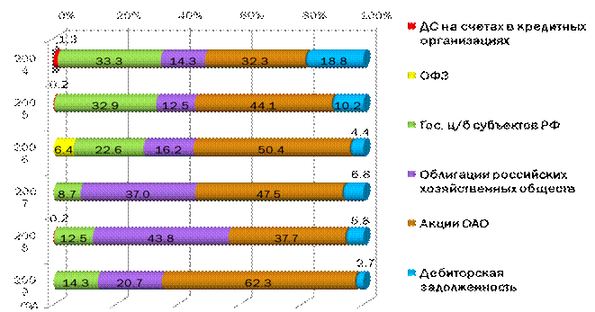 Показан верхний предел вложений, и можно сделать вывод, что законодательство дает возможность использования как рисковой, так и без рисковой политики вложений.