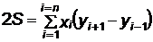 При подстановке i = 1 получим в первой формуле x0 - x2, а второй y2 - y0, где вместо x0 и y0 необходимо подставить xn и yn; если при подстановке i = n получим в первой формуле xn-1 - xn+1, во второй yn+1 - yn-1, где вместо xn+1, yn+1 необходимо подставить x1 и y1 (так как нулевая точка предшествует первой, а в данном случае первой вершине предшествует вершина n; точка n + 1 следует за точкой n, а в данном случае за вершиной n следует первая вершина) [4,5]. Вычисление площади производиться для контроля по обеим формулам.