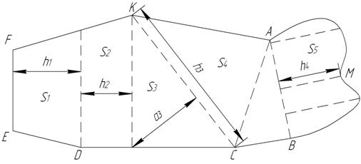 - высота. Если участок представляет многоугольник, то его делят на элементарные геометрические фигуры – треугольники и трапеции.