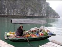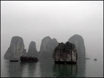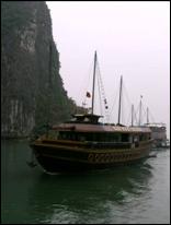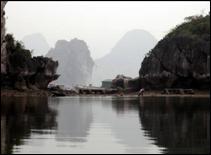 Совсем недавно (лет пятнадцать назад) в бухте не было ничего, кроме лачуг местных рыбаков и их лодок. Сегодня побережье застроено отелями и кафе, а у берега постоянно находятся сотни туристских корабликов. Если я правильно понимаю ситуацию, то проект принадлежит американцам. Сам город Халонг, выглядит не слишком привлекательно, очень тесно застроенный высокими домами и какой-то неказистый. Хотя, очень может быть, что я ошибаюсь, так как в городе мы были лишь проездом на автобусе…