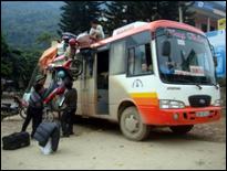 Здесь, еще раз подтвердился факт, что в отношении грузоперевозок, местный подход очень прост – «всё возят на всём». В данном случае, на крышу затаскивают мотики. Но впрочем, у меня есть подозрение, что если бы автобус по какой-то причине не смог двигаться, аборигены не задумываясь, поменяли бы их местами…