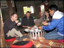 Проект экспедиции 12-го года предполагал масштабные работы в провинции Ксайнабули (Xaignabouli, западный Лаос). В состав экспедиции первоначально было включено 18 человек. Но в середине декабря неожиданно для всех министерство по туризму провинции, в которой мы должны были работать, отказало в выдаче разрешения на проведение работ. В результате, основным координатором экспедиции, Михаэлем Лауманом, был в короткие сроки разработан «план Б» и работы были перенесены в провинцию Houaphan (С-В). Для реализации этого варианта пришлось воспользоваться услугами местной лаосской компании (Green Discovery). Это имело как негативные последствия (увеличились экспедиционные расходы), так и позитивные, все время нас сопровождал местный англоязычный гид. Без него был бы невозможен вариант, к которому мы прибегли уже на третий день работы. А именно, проживание непосредственно в деревнях, в домах у местного населения. Это упростило логистику, но, с другой стороны, появились и свои особенности. Ежевечерние беседы с аборигенами за Лао-Лао (50% местный самогон). К этим беседам наши немецкие друзья оказались не слишком хорошо подготовлены ))). Тем не менее, именно благодаря сотрудничеству с этой компанией, в короткие сроки (2 недели), были получены все необходимые официальные разрешения, без которых работа была бы невозможна.