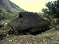 , во время экспедиции, мы жили в деревнях, в домах наших местных «гидов». Деревенские дома сами по себе очень интересны, в большинстве своем – это небольшие бамбуковые хижины, приподнятые довольно высоко (на целый этаж) над землей. Чаще всего строится такой дом, чуть ли не всей деревней, дело-то серьезное! Остов дома, как и сваи-ноги, делают из бамбука или деревянных брусьев. Стены – тоже из бамбука, но уже расплющенного и сплетенного между собой (как корзина). Крыши наклонные, для защиты от дождя и солнца, покрыты в разных деревнях по-разному, иногда это листья пальмы, иногда что-то вроде дранки, а иногда встречался и обычный шифер… Первый этаж в деревнях практически всегда не жилой, думаю, что это связано с подъемом воды в сезон дождей. А возможно, еще и со зверьем, которое водится здесь в изобилии…