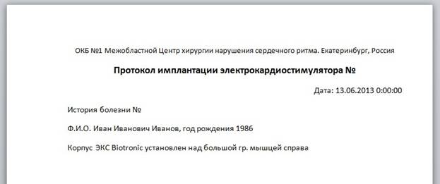 Работа посвящена реализации интерфейса ведения операционного журнала по имплантации кардиостимуляторов. Журнал позволяет представлять информацию графически и в текстовой форме для ускорения работы врачей и улучшения восприятия визуализируемой информации.