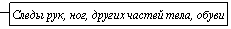 интенсивность контакта человека с объектами (сильное затягивание узлов на веревке, работа с инструментами и орудиями преступления, длительное топтание на месте и т. д. – способствуют переходу потовых веществ, отслоению частиц эпидермиса с кожных покровов, накоплению пахучих веществ в следах обуви) и др.