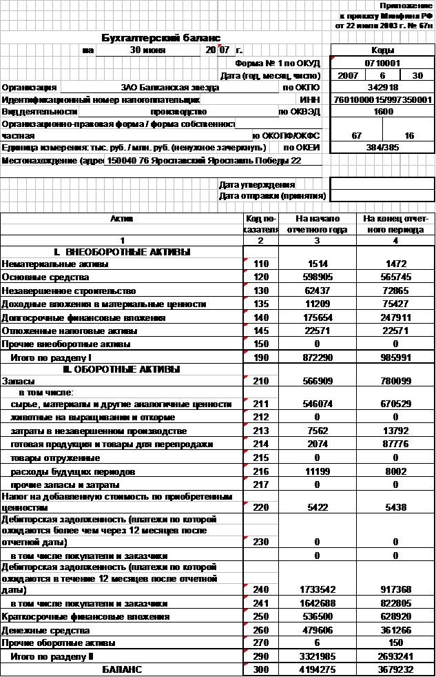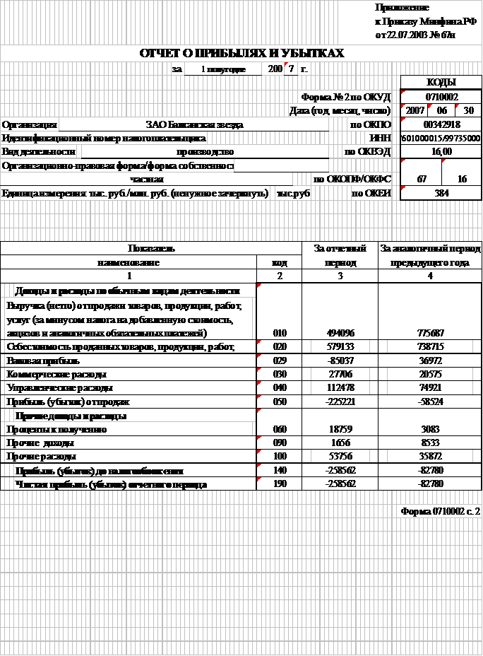 Квартальная бухгалтерская отчетность за 2 квартал 2007г., составленная в соответствии с требованиями законодательства РФ.