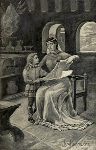 Королева Осбурга читает книгу своему сыну Альфреду |