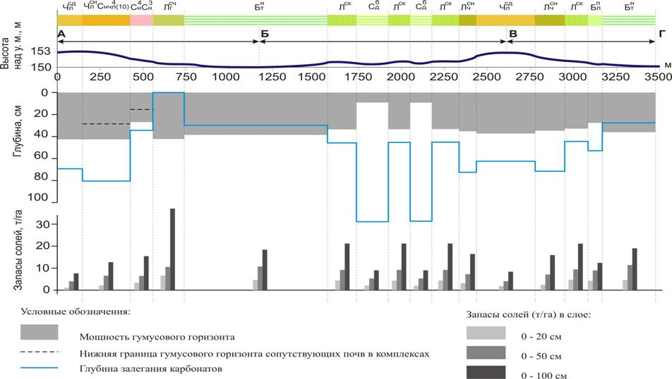 Рис. 1. Геоморфологический профиль в ОПХ «Кремлевское» Коченевского района Новосибирской области (Приобское плато)