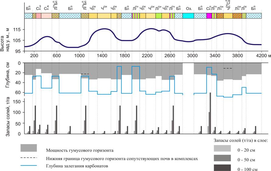 Рис. 2. Геоморфологический профиль в АО «Кабинетное» Чулымского района Новосибирской области (высокая геоморфологическая ступень Барабинской низменности)