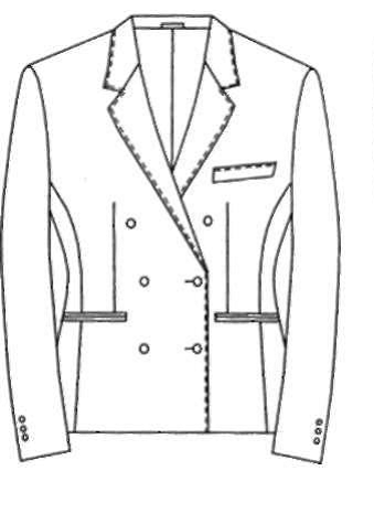 Воротник отложной. Рукава втачные, двухшовные, со шлицей внизу локтевого шва. На шлице пришиваются три форменные пуговицы. Боковые карманы прорезные без клапанов, под углом. На левой стороне груди карман с листочкой. Воротник, борта, клапаны, листочка обработаны в чистый край.