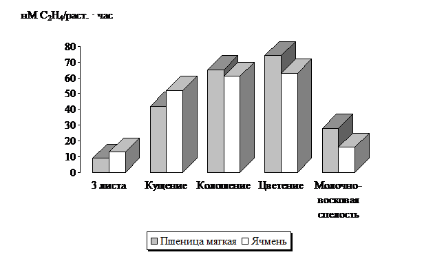 Тем не менее, биологические особенности ячменя вносят некоторые коррективы в динамику процесса. Так, по сравнению с пшеницей, отмечено более высокая скорость нарастания интенсивности связывания атмосферного азота в начале вегетации и более резкое снижение активности азотфиксирующих бактерий после цветения.