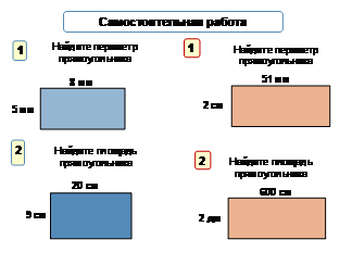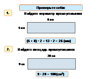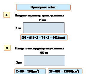 3. Отработать навыки нахождения периметра и площади прямоугольника.