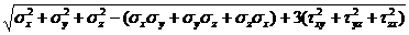 Аф = -------[(ƠΧ2+ƠΥ2+ Ơz2-(ƠxƠy+ƠyƠz+ƠzƠx) + 3 (τxy2+τyz2+ τzx2)] (2.4.)