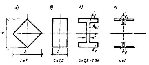 Для составных двутавров (рис.2.2,в). коэффициент“c” вычисляется по формуле (2.13).