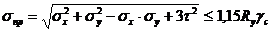 Учет сложного напряженного состояния при расчете металлических конструкций производится через расчетное сопротивление