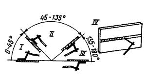 1 – нижнее; 11 – вертикальное; 111 – потолочное; 1У – горизонтальное на вертикальной поверхности