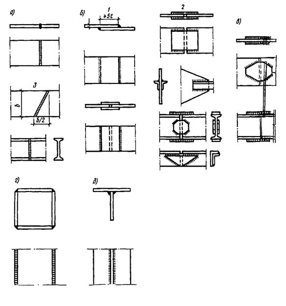 Развитие автоматической сварки создает благоприятные условия для производства сварных двутавров из универсальной стали по определенному сортаменту, что дает возможность пользоваться ими так же, как и прокатными (рис. 3.1,е).