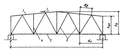 1 – верхний пояс; 2 – нижний пояс; 3 – раскосы; 4 - стойки