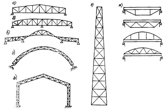 Рис. 9.6. Системы решетки ферм |