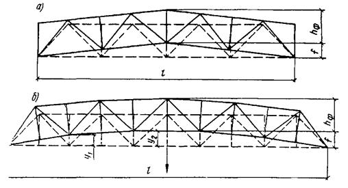 Строительный подъем. В фермах больших пролетов (более 36м), а также в фермах из алюминиевых сплавов или высокопрочных сталей возникают большие прогибы, которые ухудшают внешний вид конструкции и недопустимы по условиям эксплуатации.