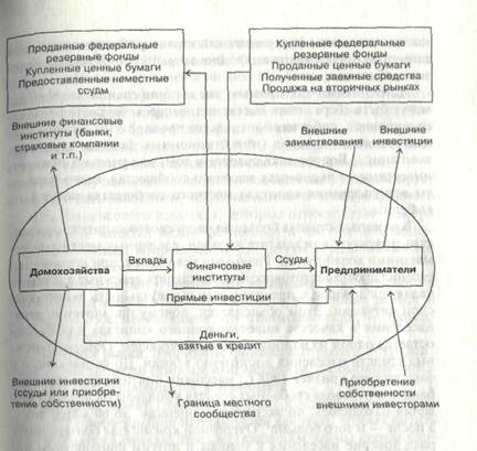 Рынки и движение капитала между основными субъектами местного сообщества можно представить в виде схемы, которая является модификацией теоретической модели экономики местного сообщества, показывающей его связи с "внешним миром".