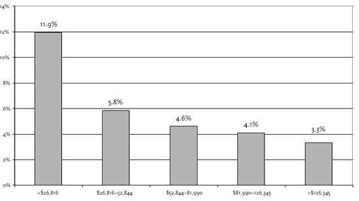 Самый высокий процент при уплате налогов штата и местных налогов приходится на семьи с самыми низкими доходами.