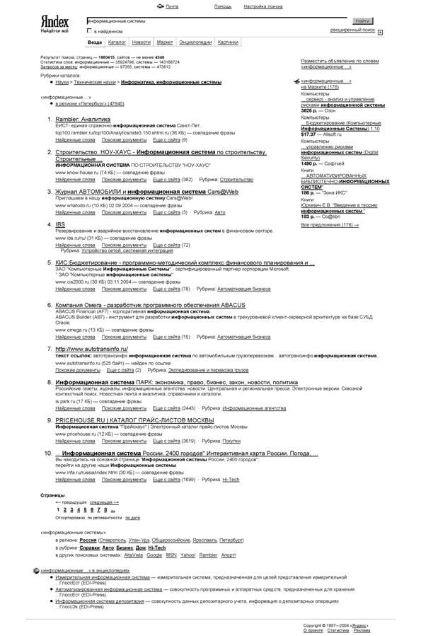 Рис. 10. Пример отчета: результаты поиска в Яндекс. Строки отчета являются ссылками.
