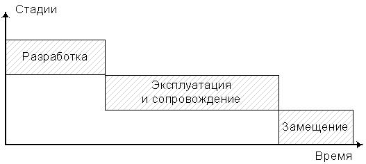 Линейный жизненный цикл информационной системы состоит из трёх стадий: