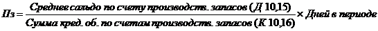 Так, период оборачиваемости запасов (сырья и материалов), (Пз) равен времени хранения их на складе от момента поступления до передачи в производство. Чем меньше этот период, тем меньше при прочих равных условиях производственно-коммерческий цикл. Пз определяется следующим образом: