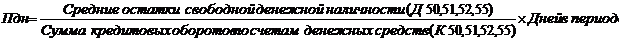 Средние остатки свободной денежной наличности (Д 50,51,52,55)