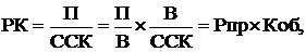 Таким образом, рентабельность совокупного капитала (активов) равняется произведению рентабельности продаж (Рпр) и коэффициента оборачиваемости (Коб).