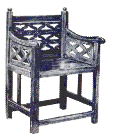 Плоская прорезная резьба нередко применялась для украшения старинной русской мебели. На рис. 7 показано кресло, выполненное из древесины сосны с плоской прорезной и контурной резьбой (конец XVII в.).