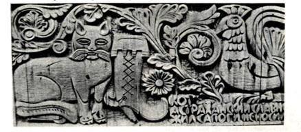 Традиции старых мастеров сохраняются и сейчас в работах резчиков Хотьковской фабрики художественных изделий из дерева и кости, созданной на основе бывших абрамцевских мастерских. Образец совремнной кудринской резьбы показан на рис. 5.