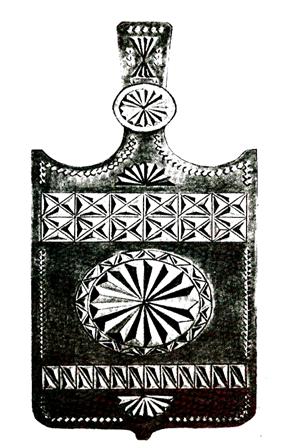 В далекие времена каждая геометрическая фигура и различные их сочетания имели свое символическое значение. Так, розетка с лучами являлась символом солнца. Шли века, развивалось понятие о красоте, геометрические элементы складывались в орнаменты. Из простейших порезок (выемок), выполняемых одним инструментом (ножом-косячком), мастера-резчики научились создавать богатейшие узоры, применяемые для украшения различных предметов домашнего обхода.